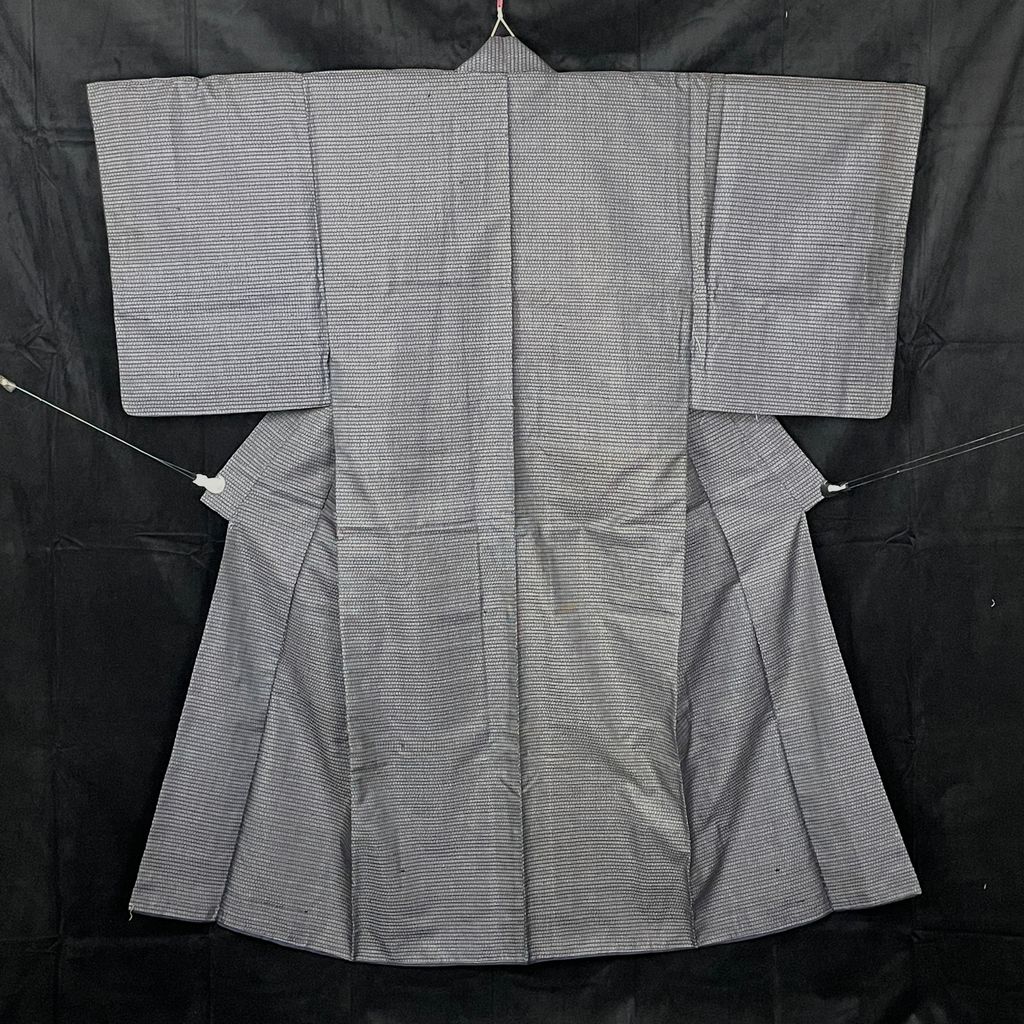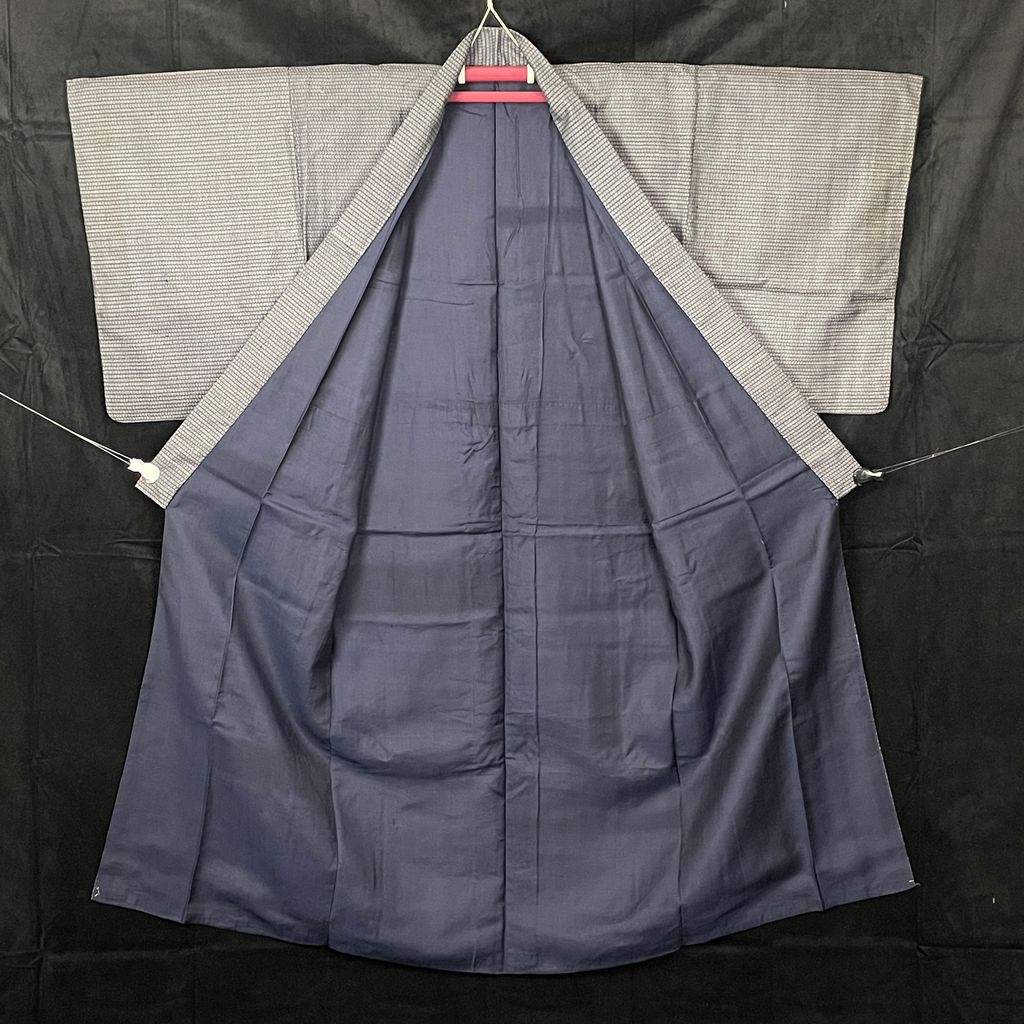 Kimono - Men's Tsumugi Set (2 Pieces) - Blue, Geometric Pattern, Silk 4K7-02