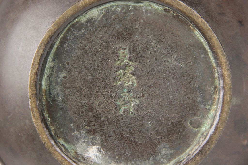 This antique copper vase was crafted by Murakami Kiyosai, a skilled artisan known for his traditional Kyoto metalwork. The vase is elegantly designed with double lion ears (獅子耳), a motif often seen in Japanese antiques representing power and protection. The intricate craftsmanship and the warm copper tones showcase the high skill level of the artist, making this piece a standout addition to any tea ceremony tools or antique collection. Its historical significance, combined with the unique design, makes it a perfect piece for those who appreciate Japanese metal arts and Kyoto craftsmanship.